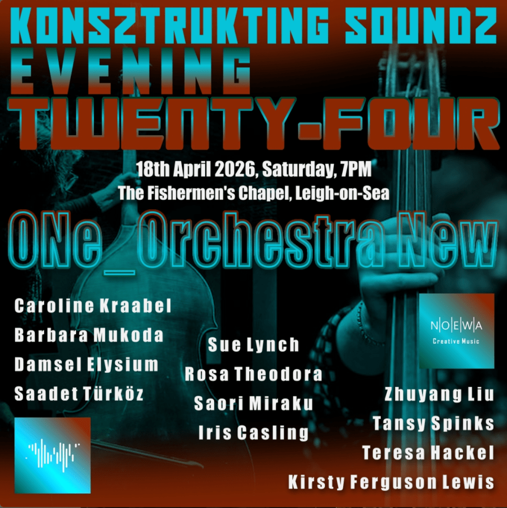 Saturday 18 April 2026: ONe_Orchestra New at Konszrukting Soundz, at The Fisherman’s Chapel, Leigh-On-Sea from 19h00! Subgroups from the orchestra, followed by the whole she-bang : )