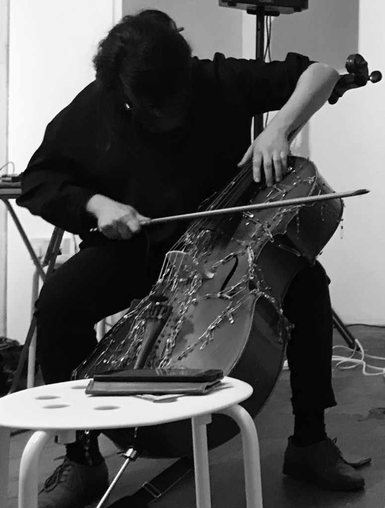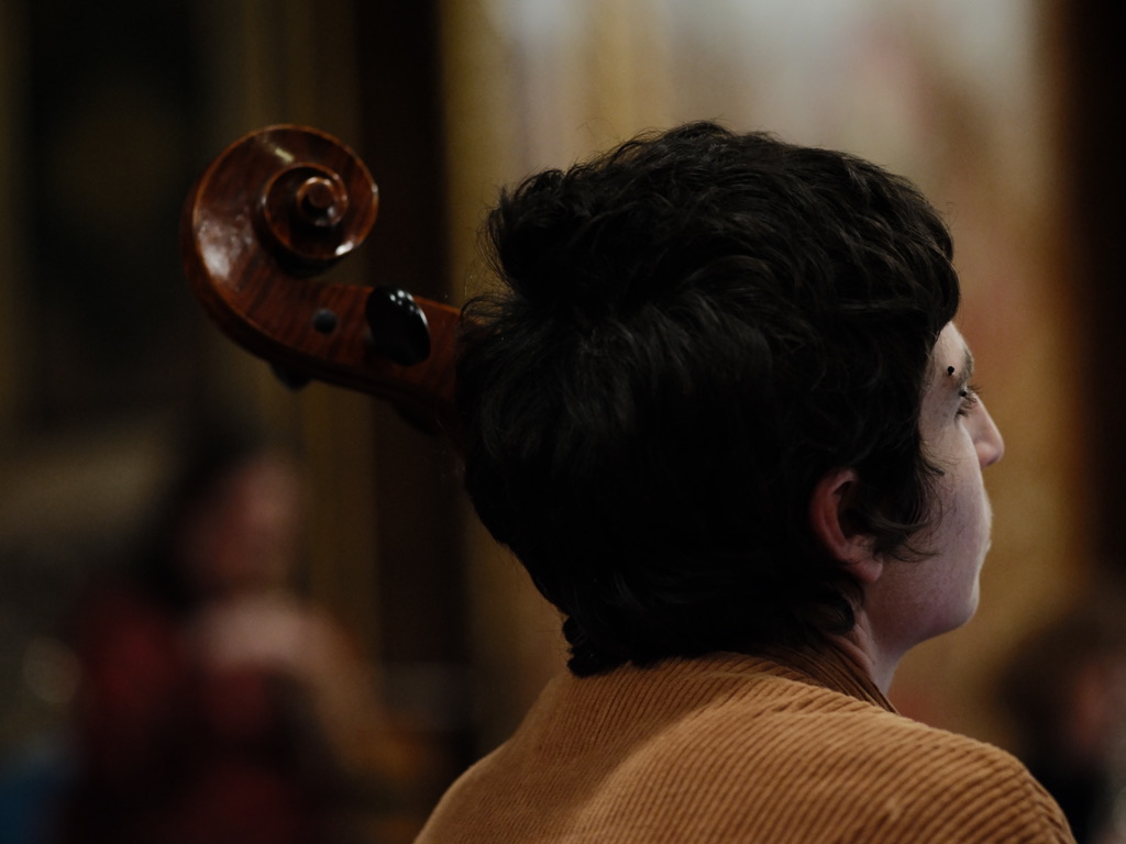 Kirke Gross, cello. ONe_Orchestra New, chapel of Kings College London, 8 March 2024. Photo by Barbara Mukoda.